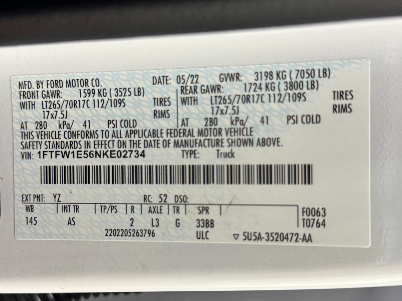 1FTFW1E56NKE02734