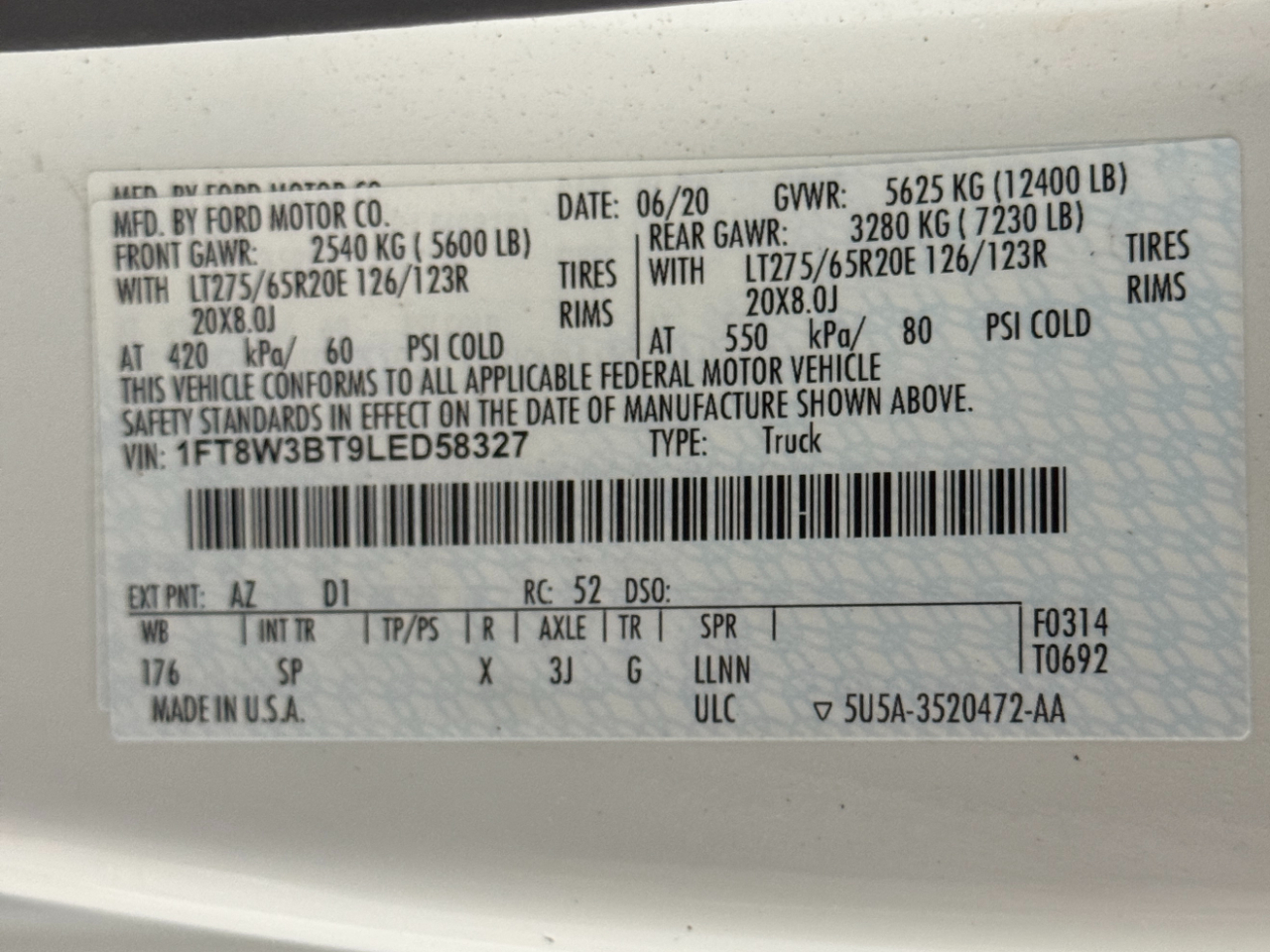 VIN: 1FT8W3BT9LED58327