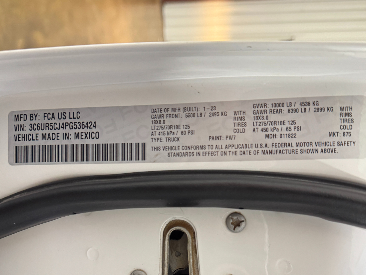 VIN: 3C6UR5CJ4PG536424