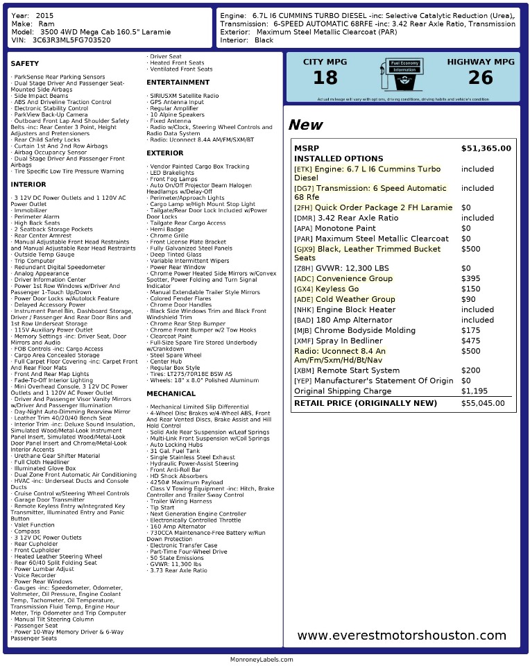 Engine: 6.7 L I6 Cummins Turbo Diesel