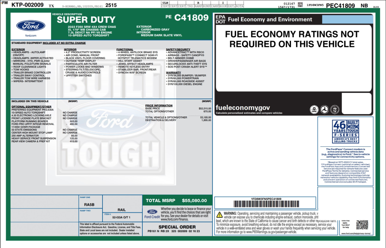 7.3L 2V DEVCT NA PFI V8 Gas -inc: 410 Amp Dual Alternators, 250 Amp + 160 Amp
