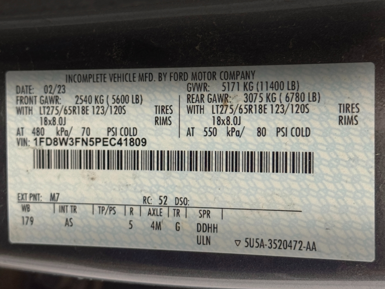 VIN: 1FD8W3FN5PEC41809