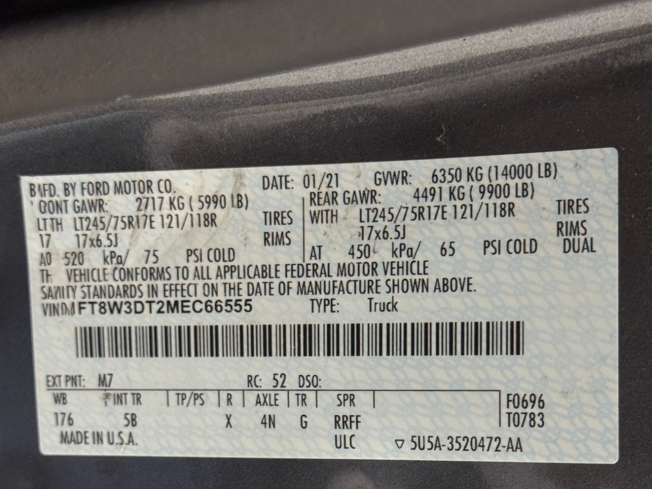 VIN: 1FT8W3DT2MEC66555