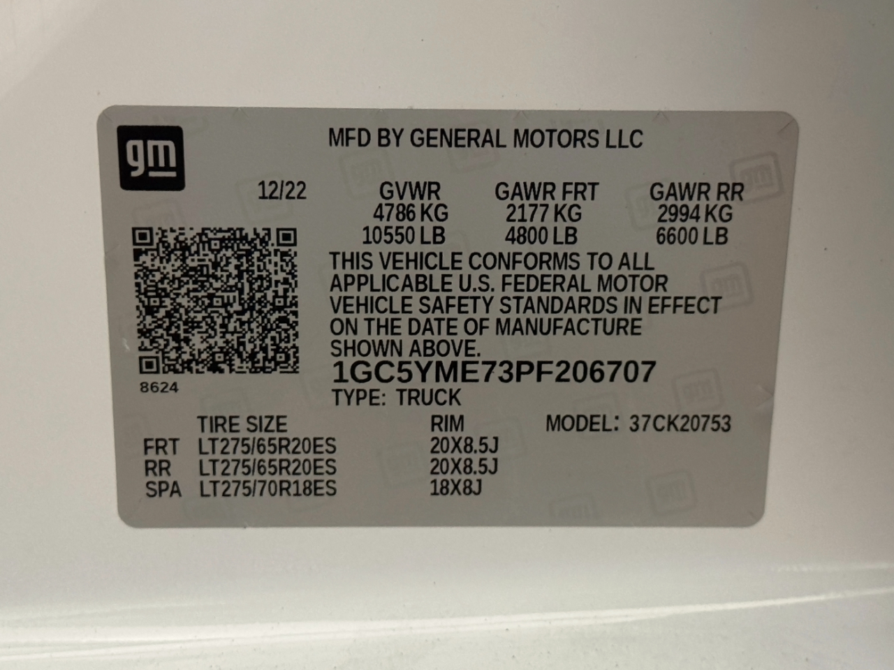 VIN: 1GC5YME73PF206707