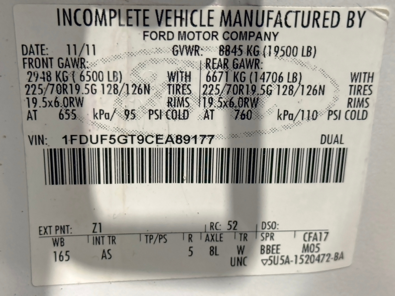 VIN: 1FDUF5GT9CEA89177