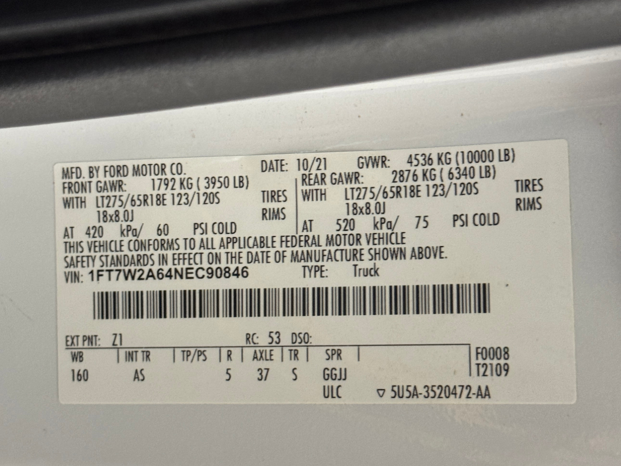 VIN: 1FT7W2A64NEC90846