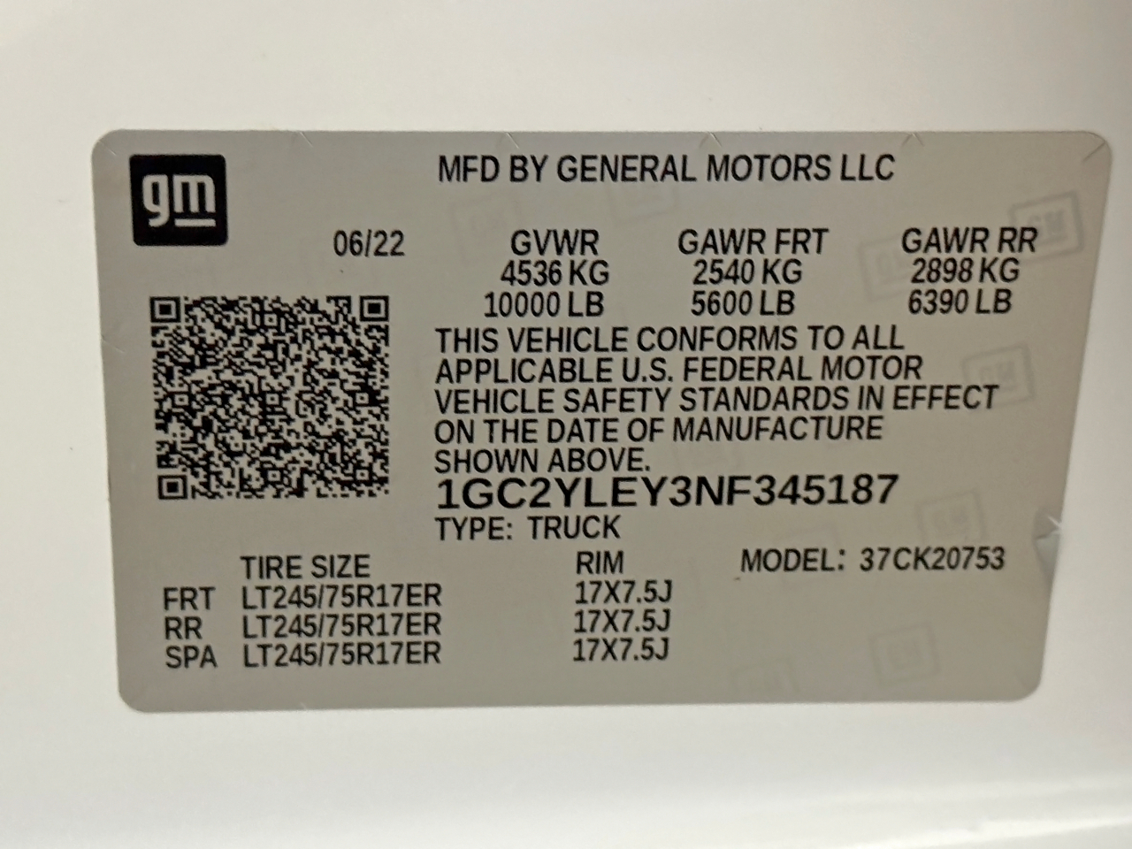 VIN: 1GC2YLEY3NF345187