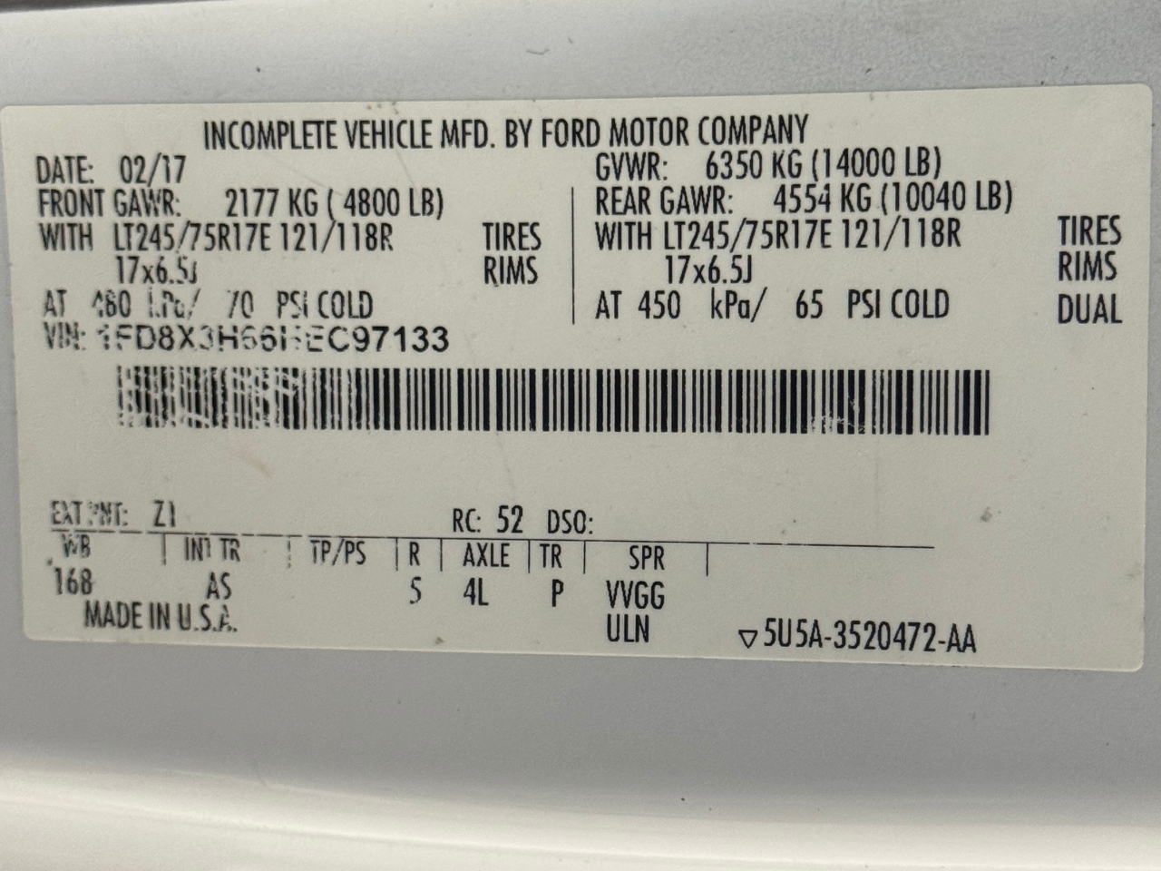 VIN: 1FD8X3H66HEC97133