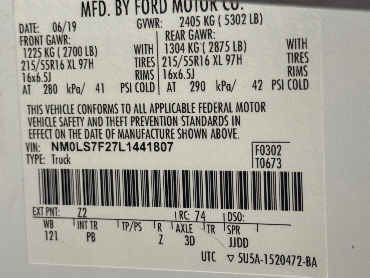 VIN: NM0LS7F27L1441807