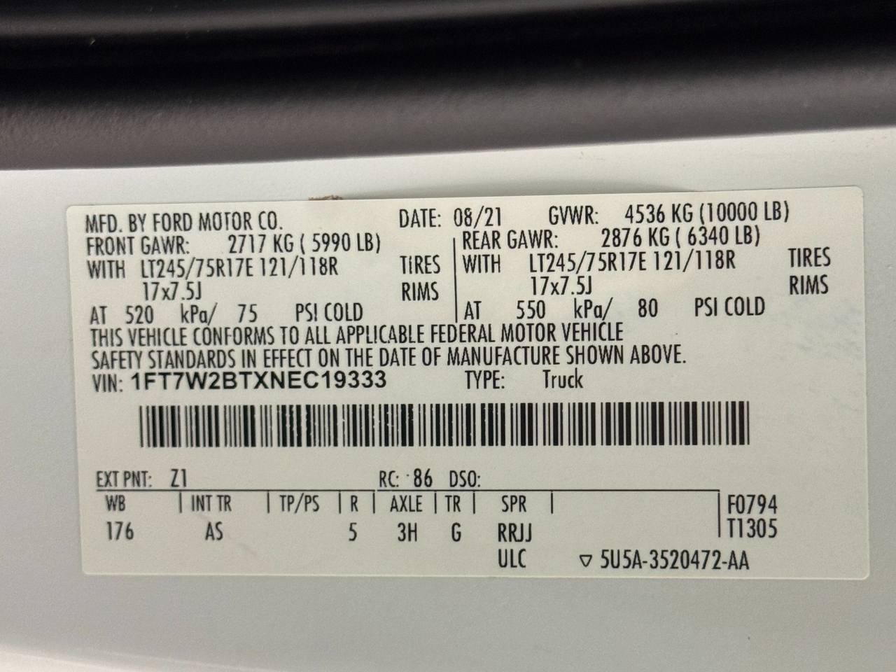 VIN: 1FT7W2BTXNEC19333