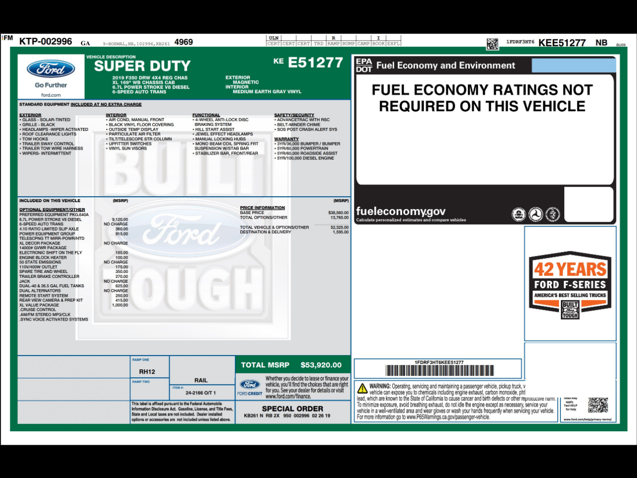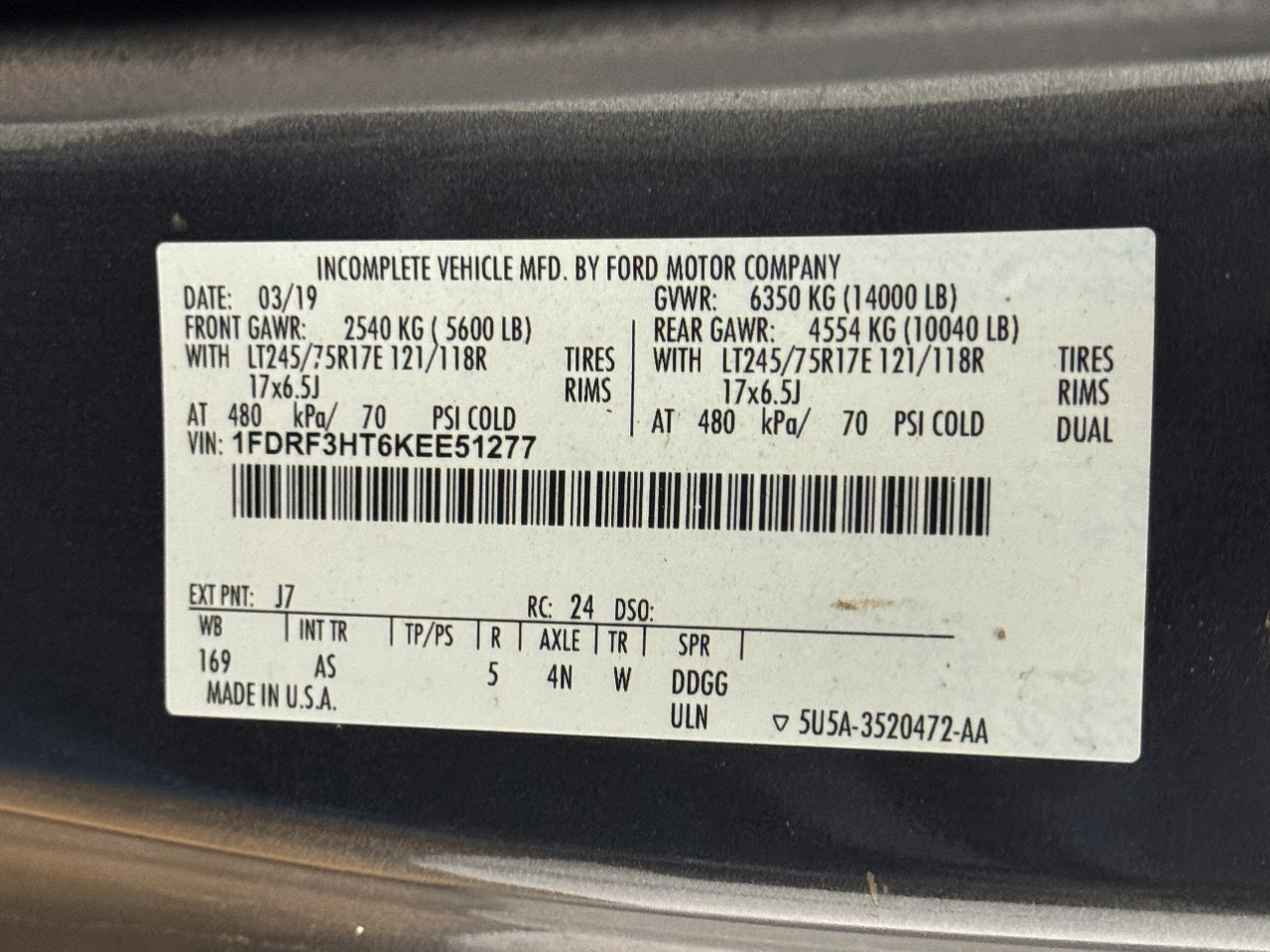 VIN: 1FDRF3HT6KEE51277