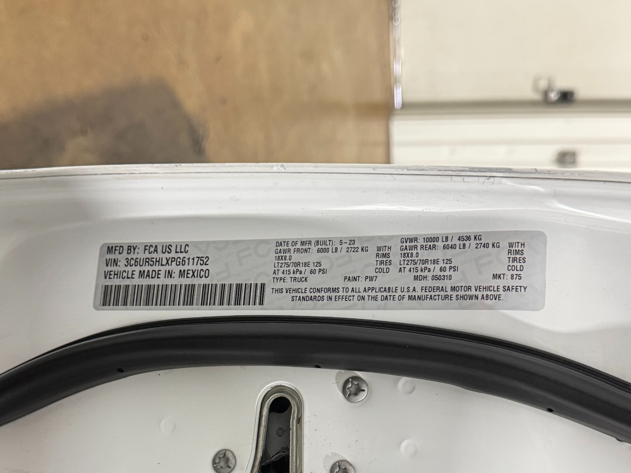 VIN: 3C6UR5HLXPG611752