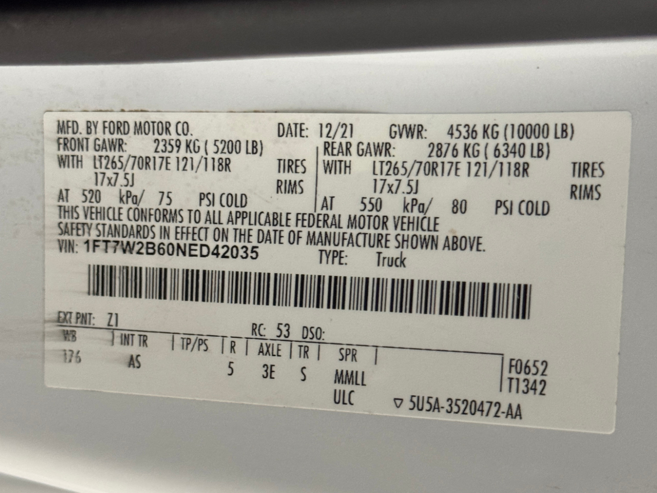 VIN: 1FT7W2B60NED42035