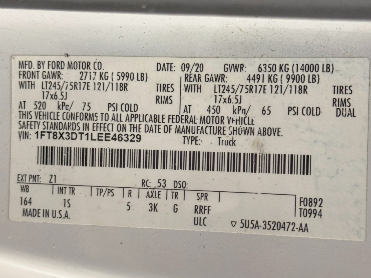 VIN: 1FT8X3DT1LEE46329